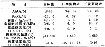 由于在氧化鋁空心球磚基質(zhì)中形成由針柱狀二次莫來石構(gòu)成的三維網(wǎng)絡結(jié)構(gòu),其雜質(zhì)含量低,制品高溫性能好。其主要性能見表1。