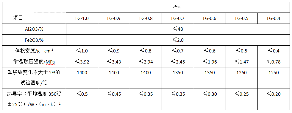 表1高鋁質(zhì)隔熱耐火磚的理化指標(biāo)