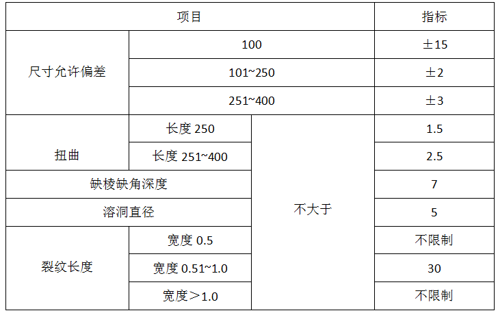 表2高鋁質(zhì)隔熱耐火磚的尺寸允許偏差及外觀(mm)