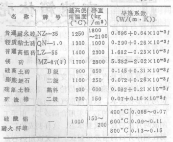 爐襯的主要作用是隔熱保溫。在選用上要滿足使用溫度、工作壽命,筑爐成本、能源消耗、施工難易等一系列要求,不論耐熱材料還是保溫材料都不應(yīng)長期超溫使用。表2列出了常用的耐熱材料和保溫材料。